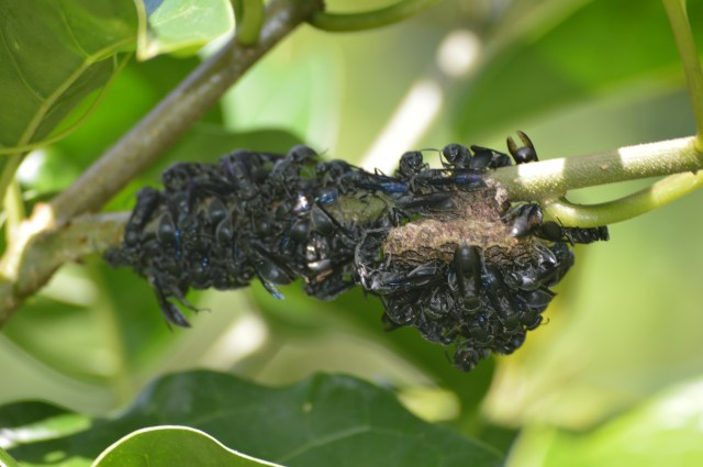 While I saw mostly paper wasps in Costa Rica, an important wasp pollinator in the neotropics is the fig wasp. A fig is not technically a fruit but rather a cluster of tiny flowers and seeds which require a specialized pollinator. Female fig wasps are tiny enough to crawl inside the fig. Once inside, she lays her eggs while fertilizing the fig with pollen she obtained from the fig she was born in! There is an awesome article (and video) on this process here.