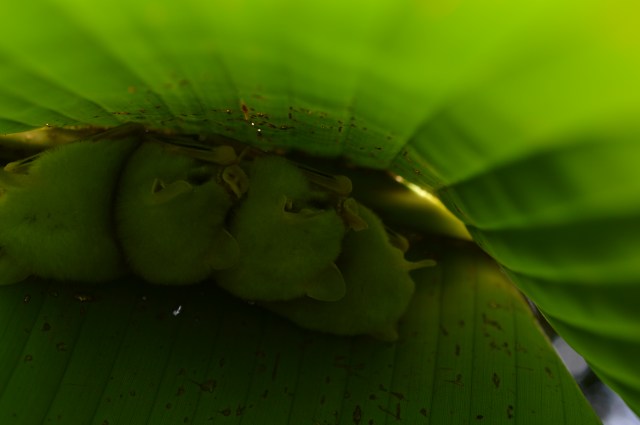 They do more than suck blood. Nectar feeding bats have long noses, weak teeth, and long tongues. They tend to go for flowers that are pale in color and almost musty in scent. Frugivorous bats (which only eat fruit), are important in tropical forest succession (i.e. change). Although they aren’t “pollinators” in the technical sense of the word, they do disperse seeds. The Honduran Ghost Bat (or Honduran White Bat) is an example of a (very cute) frugivorous bat. During the day, these bats roost under large leafs and at night, they search for food. After eating some fruit, bats poop out the seeds while in flight, allowing plants to disperse over a relatively large range.