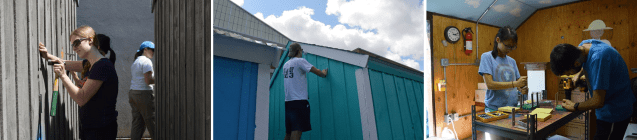 As some of you may have seen on Facebook, the Starks Lab “bee huts” got a serious facelift this summer. During the first week of the Tufts University Research Experience for Undergraduates (REU) Program, we were landscapers, painters, and carpenters—and it was a blast!