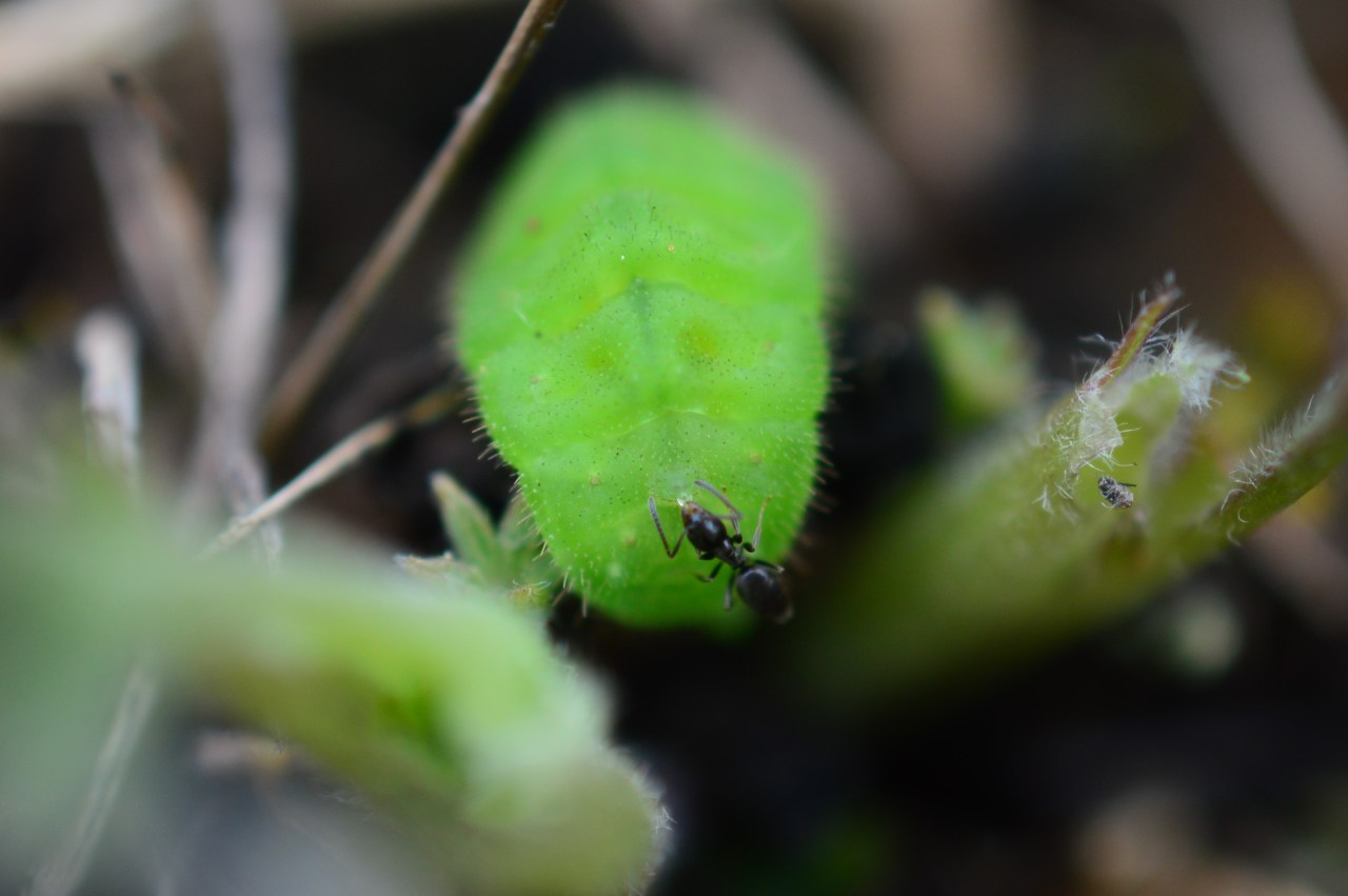 In many cases, this ant-caterpillar relationship is an overall mutualism—caterpillar survival is usually much greater when the ants are around to protect them, and the caterpillar’s sugary secretion tends to be both nutritious and delicious. But the caterpillar I study, the Puget blue, has yet to be studied regarding its ant attendants.